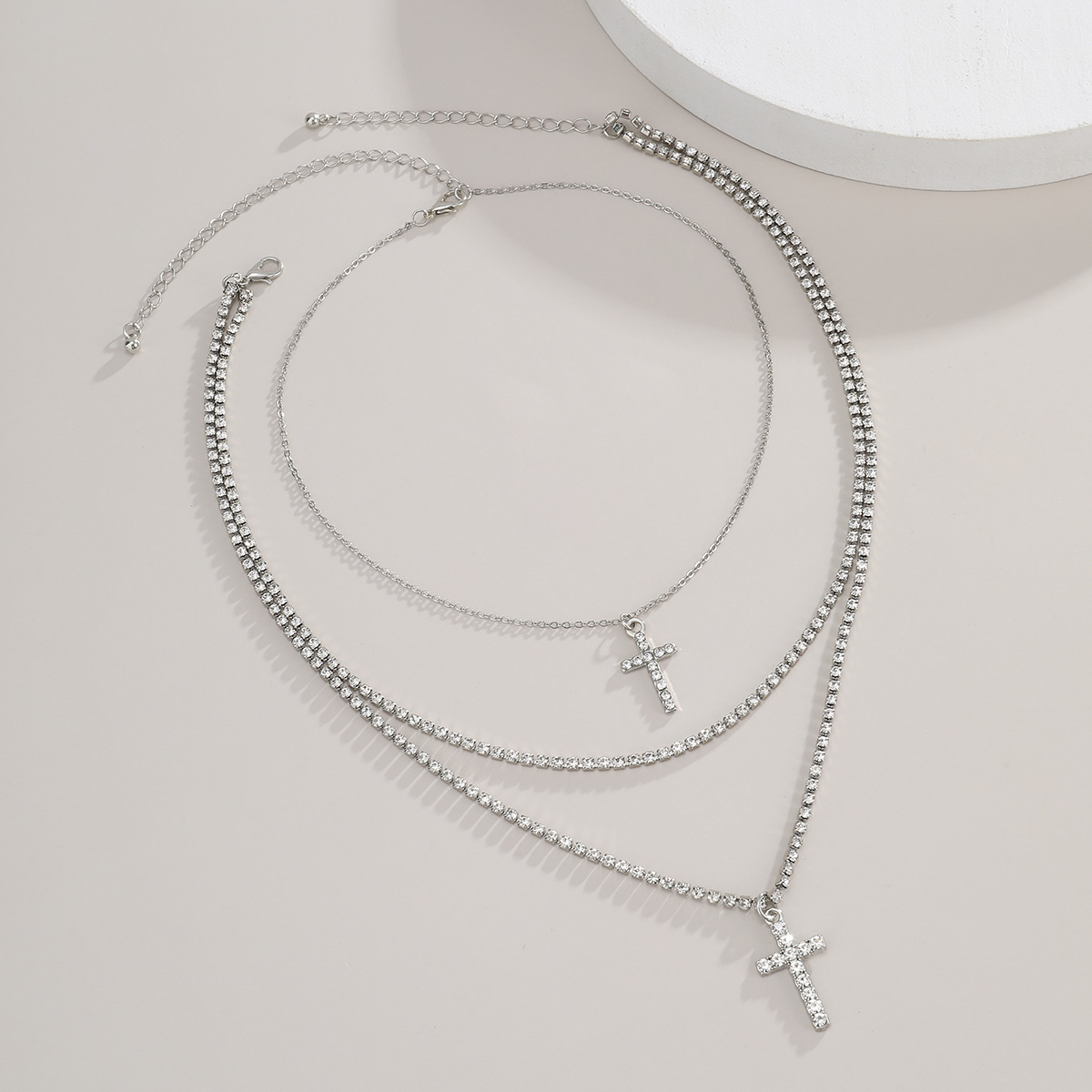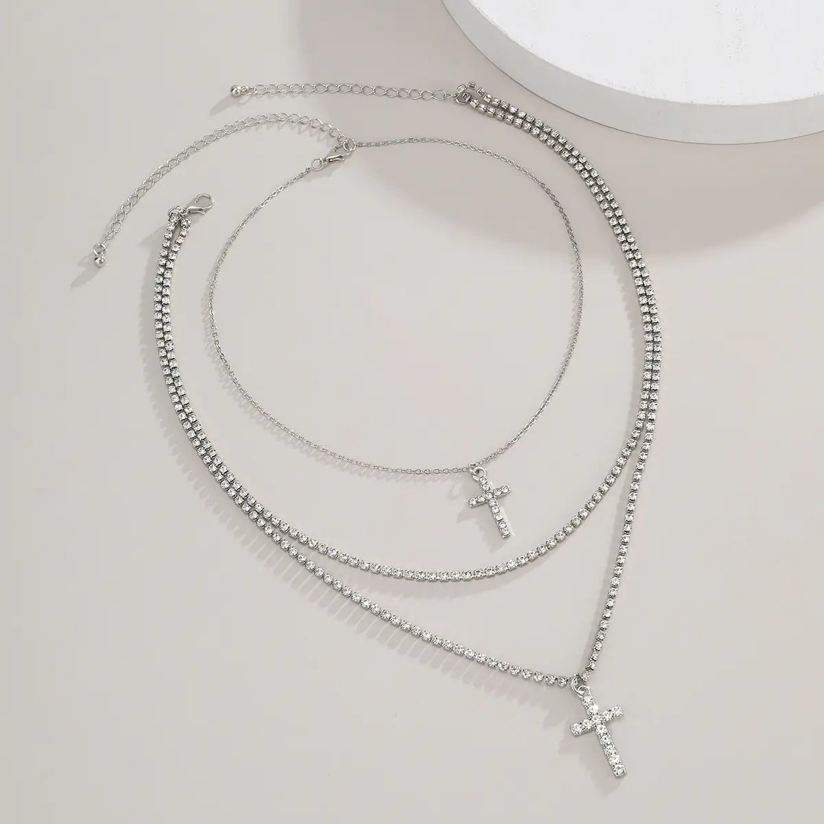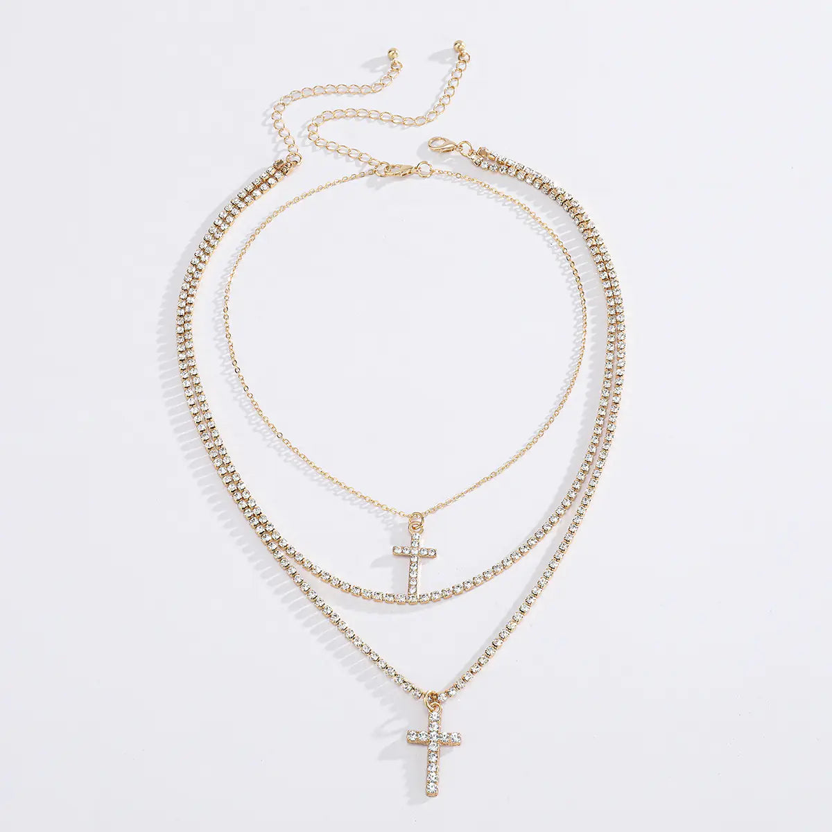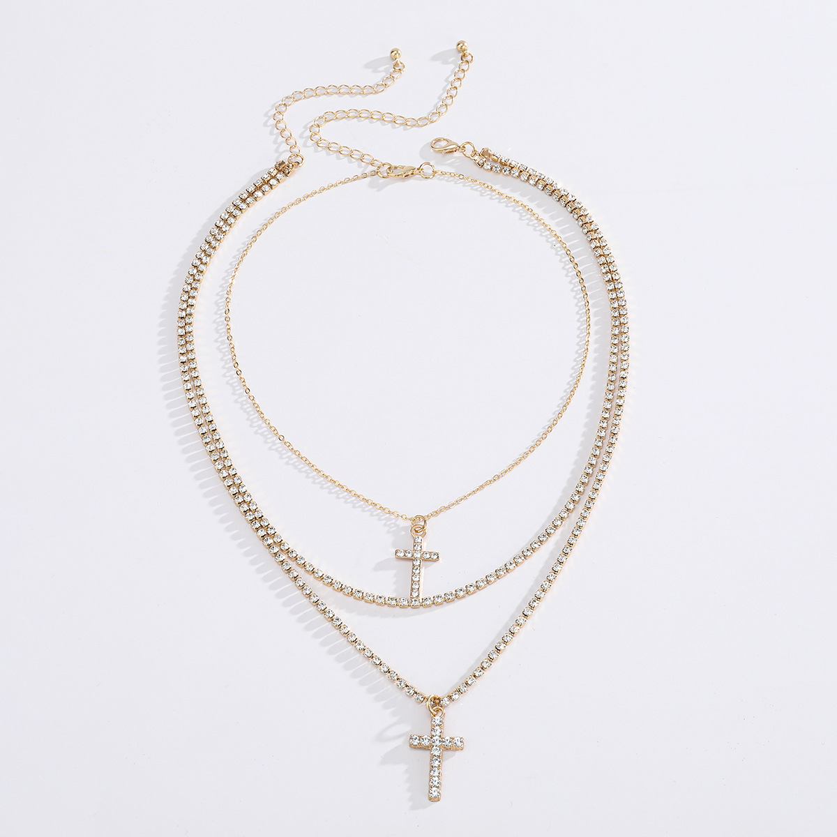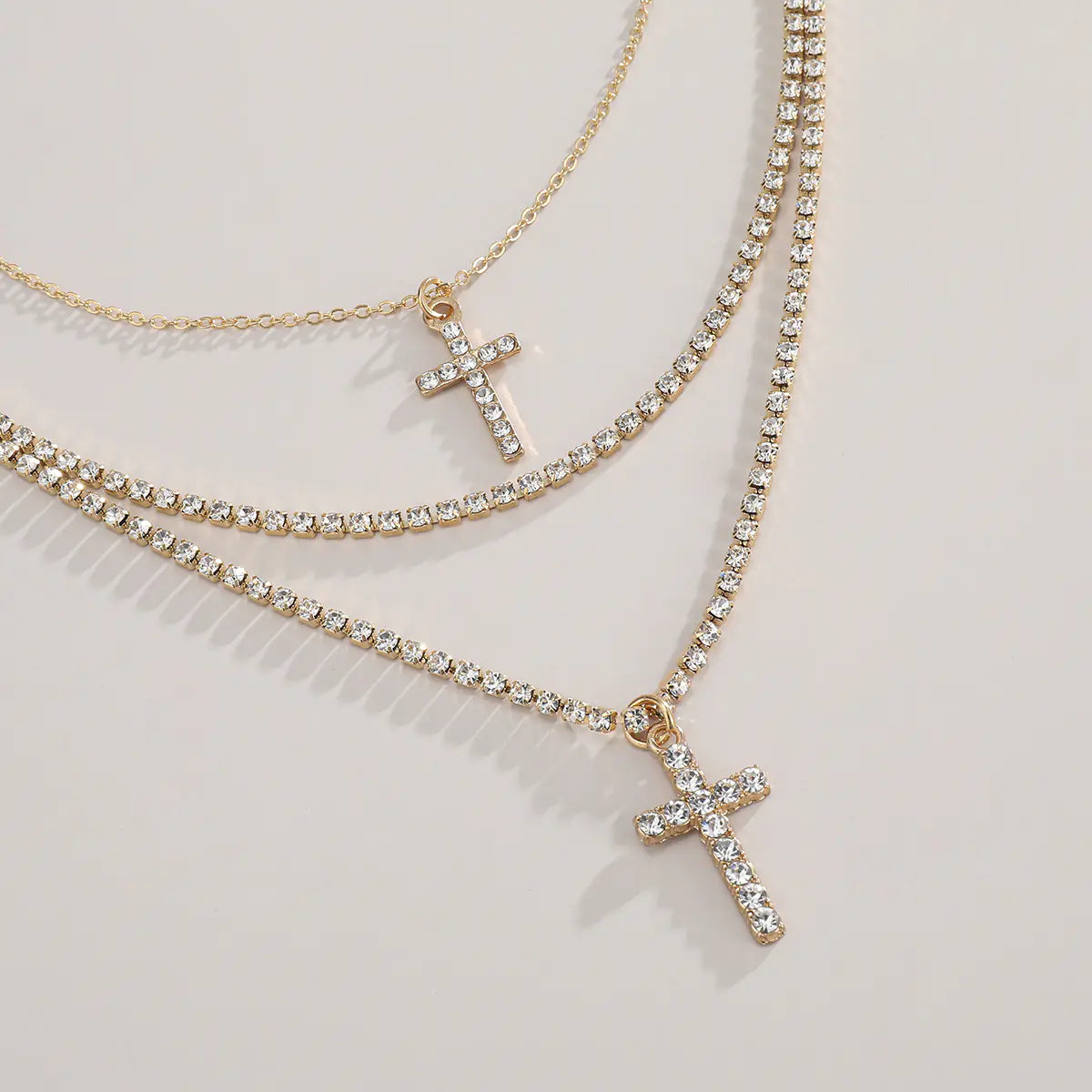 Creative Cross Necklace with Glass Rhinestones Layers